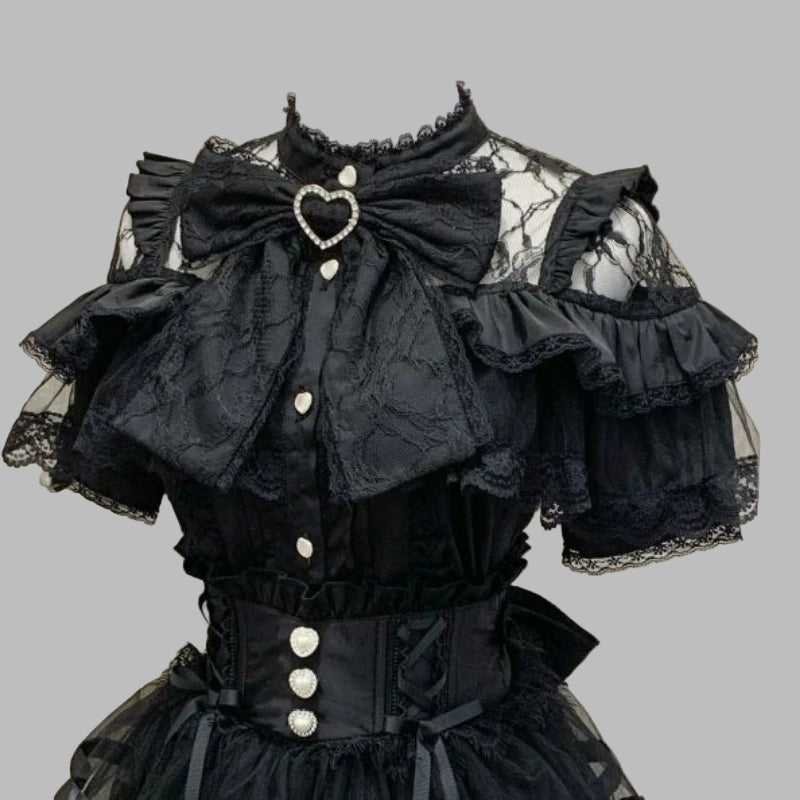 Gotycka Bluzka Koronkowa z Kokardą i Gorsetowym Pasem Czarna Zobacz opcje