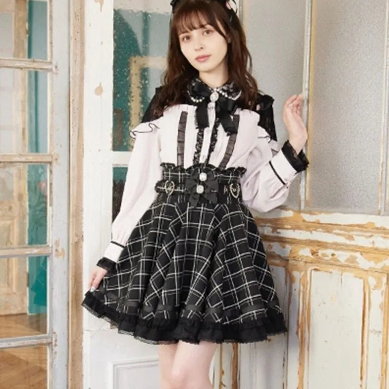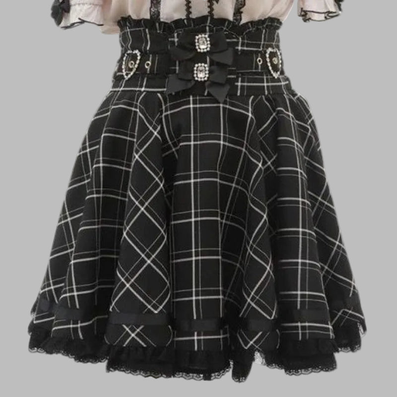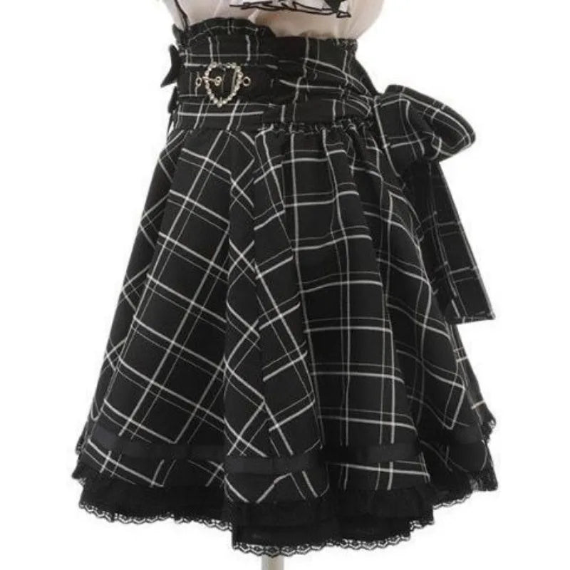 Gotycka Spódnica Punk Rock w Kratę z Kokardą L