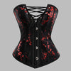 Gotycki Steampunk Gorset Czarny z Czerwonymi Kwiatami i Sznurowaniem Zobacz opcje