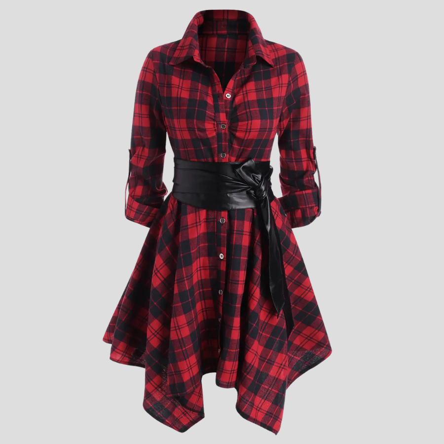 Grunge Punk Sukienka Koszulowa w Kratę z Czarnym Pasem Zobacz opcje