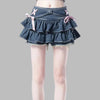 Jeansowa Mini Spódniczka z Falbanami i Różowymi Wstążkami Punk Rock