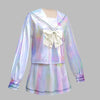 Jirai Kei Zestaw Marynarska Holograficzna z Kokardą Biała