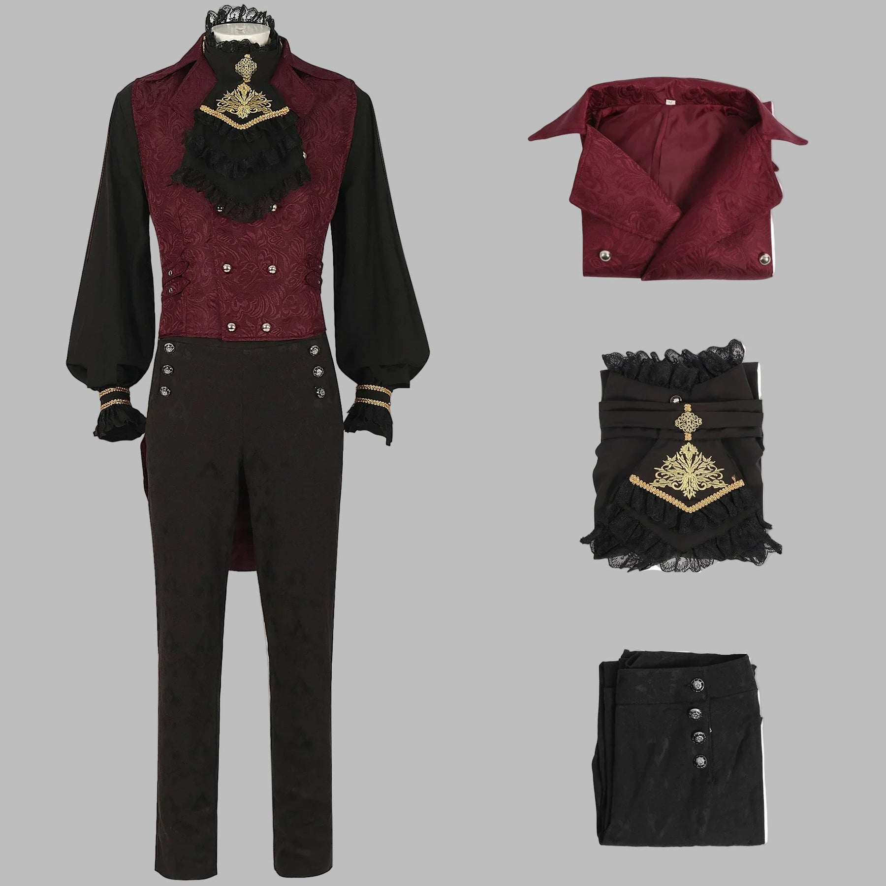 Komplet Steampunk Męski Bordowy Czarny z Koronką Złote Detale Zobacz opcje