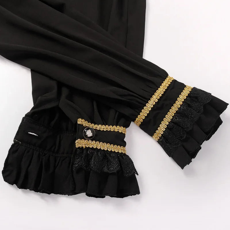 Komplet Steampunk Męski Bordowy Czarny z Koronką Złote Detale