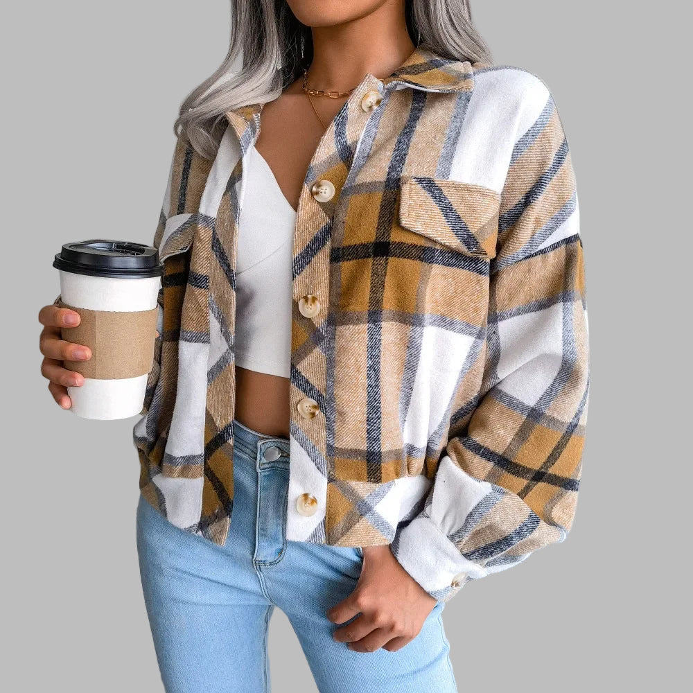 Koszula Grunge w Kratę Beżowa z Kieszeniami Zobacz opcje