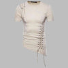 Koszulka Asymetryczna Beżowa ze Sznurowaniem Punkowa