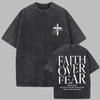 Koszulka Oversize Grunge Rock z Krzyżem i Napisem "Faith Over Fear" 3XL