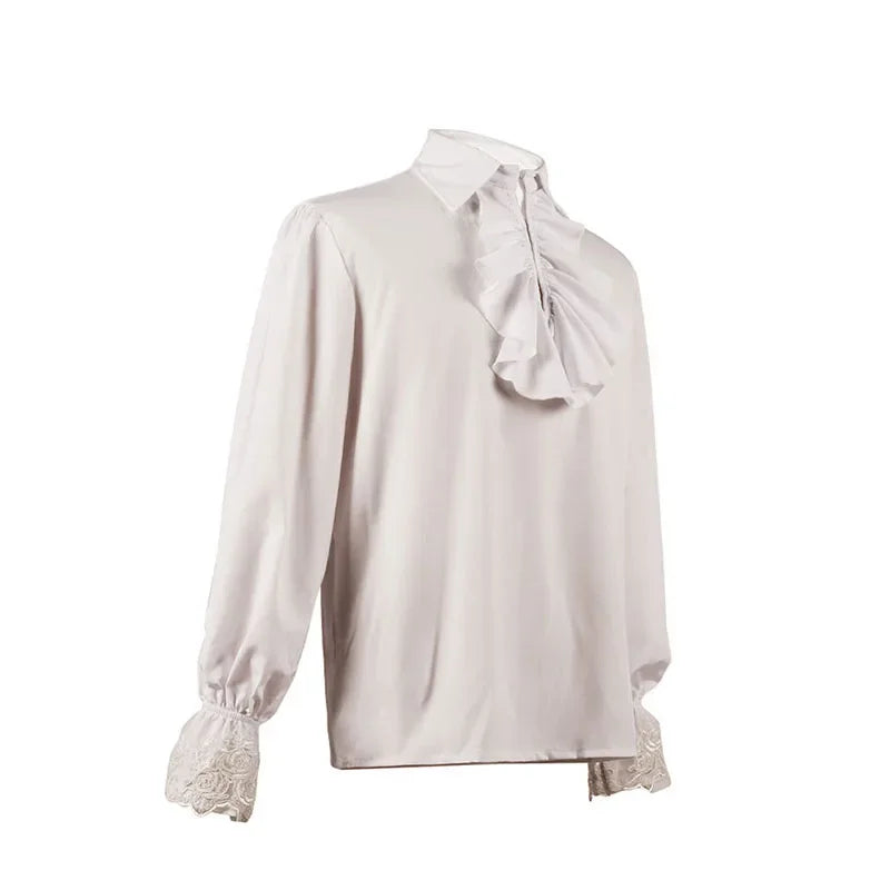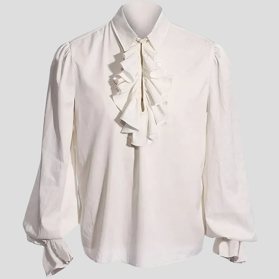 Kremowa Koszula Rock z Żabotami i Bufiastymi Rękawami