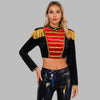 Krótka Kurtka Steampunk Militarna z Frędzlami Czarno-Czerwon