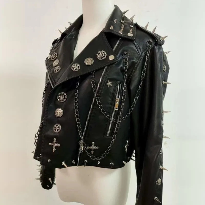Kurtka Punkowa Czarna Ćwieki Łańcuchy Damska Krótka