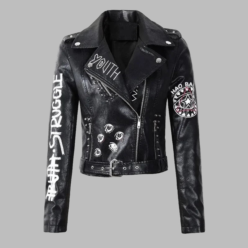 Kurtka Punkowa Goth Skórzana Czarna Ćwieki Napisy Grunge DamskaRetry
