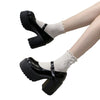 Lakierowane Platformy Mary Jane z Paskiem Czarne Metal