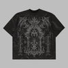 Luźny T-shirt Black Grunge Metal z Bramą i Ornamentami