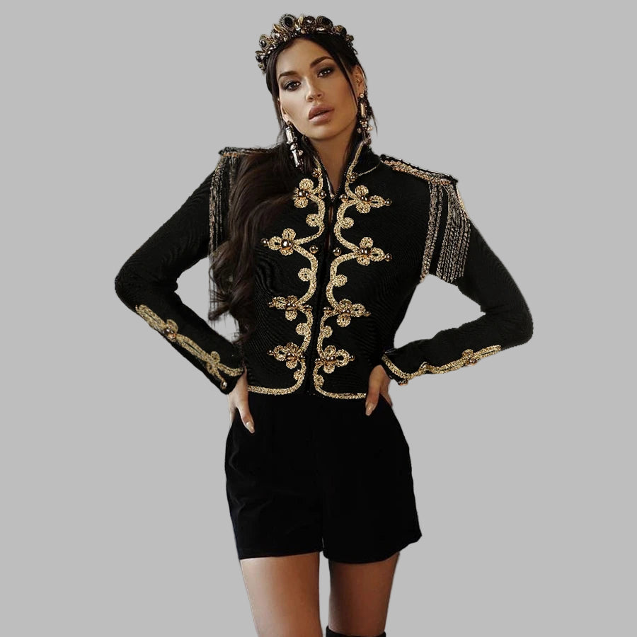 Marynarka Militarna Czarna Złote Hafty Damska Vintage Steampunk Zobacz opcje