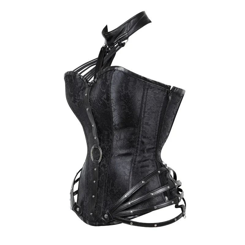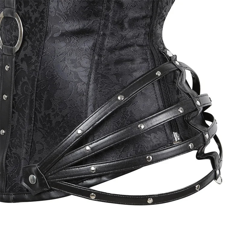 Metal gotycki Gorset z Paskami i Ćwiekami Czarny Punk Rock