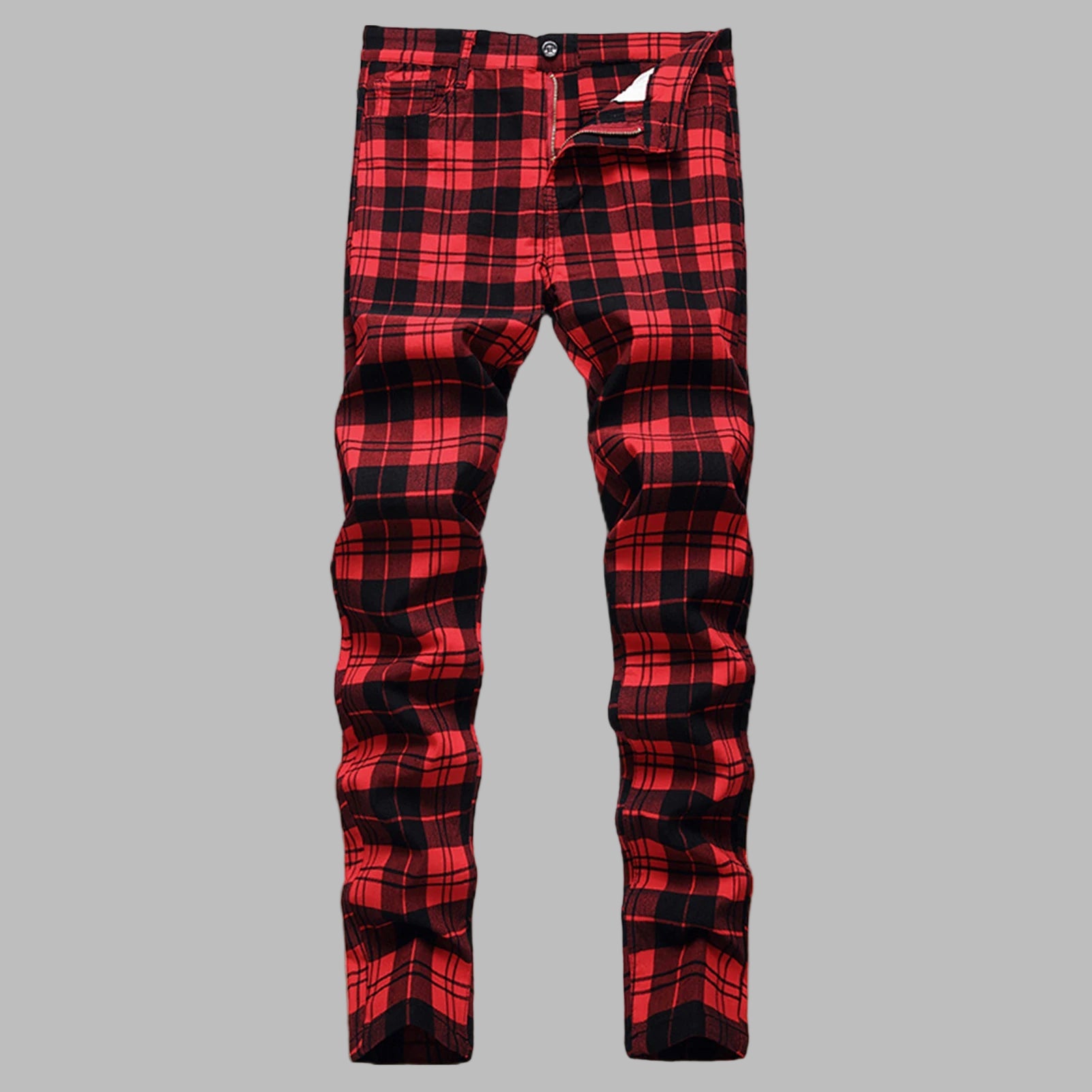 Metal Spodnie w Kratę Czerwono-Czarne Rockowe Vintage