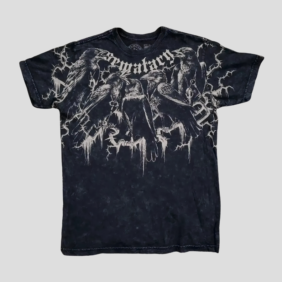 Punk Metal T-shirt z Krukami i Napisem Czarny Zobacz opcje
