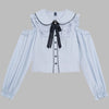 Niebieska Bluzka Lolita z Odsłoniętymi Ramionami i Kokardą Kawaii Lolita Jirai Kei