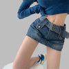 Niebieska Jeansowa Mini Spódniczka Rock z Paskami Zobacz opcje