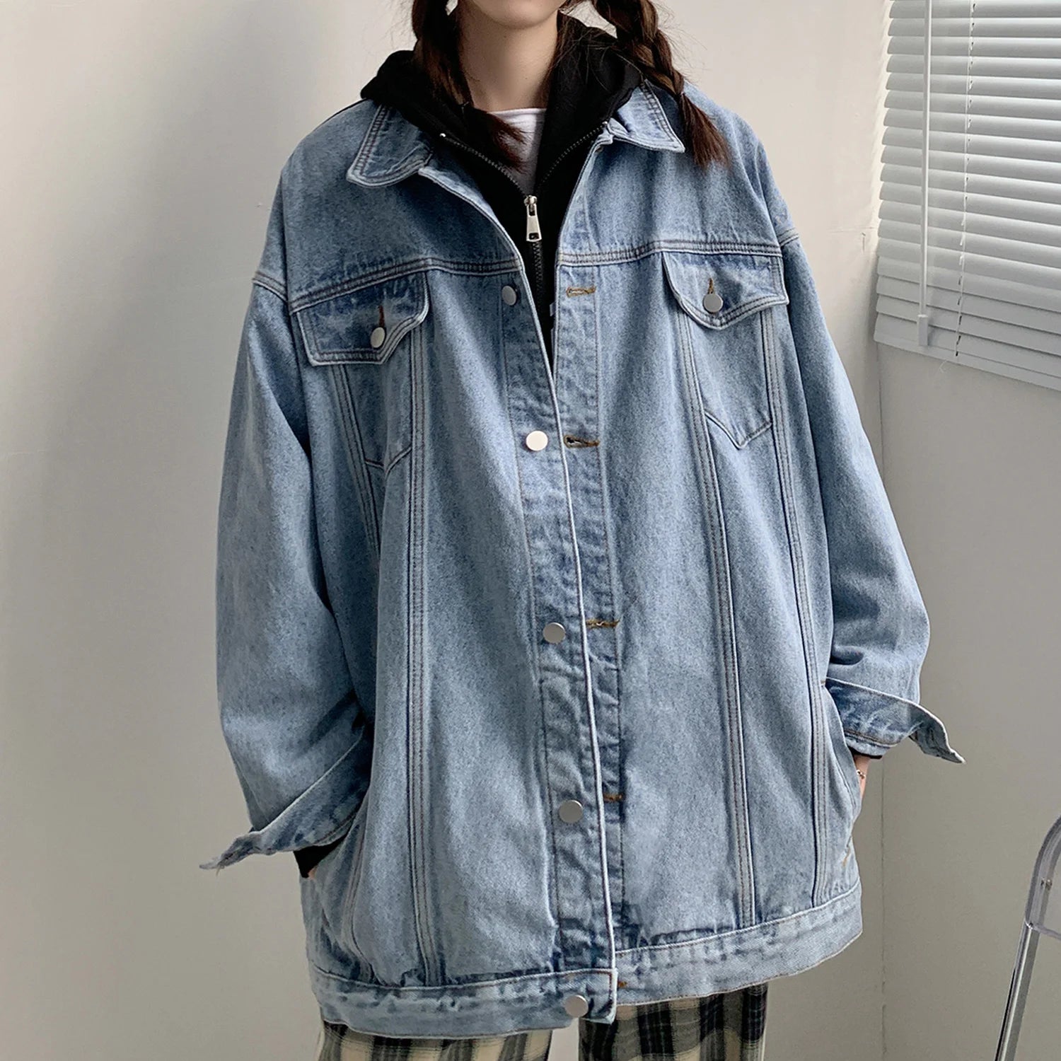 Niebieska Kurtka Metal Jeansowa Oversize z Kieszeniami Zobacz opcje