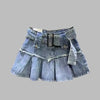 Niebieska Spódniczka Jeansowa Punk z Paskiem i Plisami Zobacz opcje