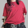 Oversizowa Koszulka Punk Rock Czerwona z Printem