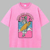 Oversizowa Koszulka Rock z Surferem Szkieletem Różowa