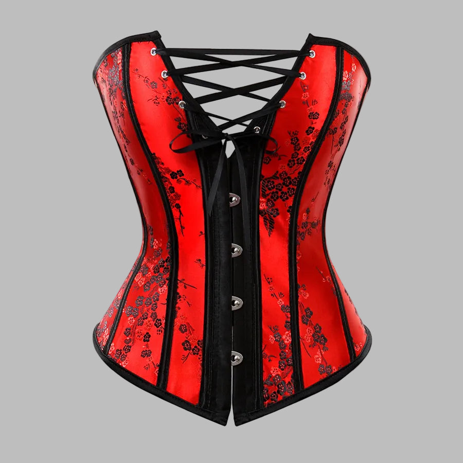 Punk Gorset Czerwony z Koronką i Sznurowaniem z Tyłu