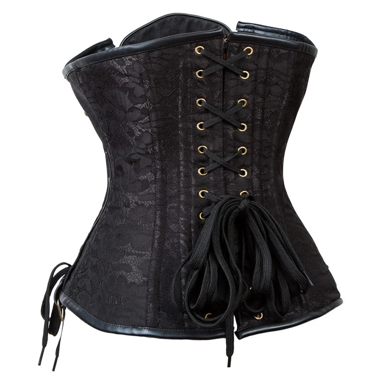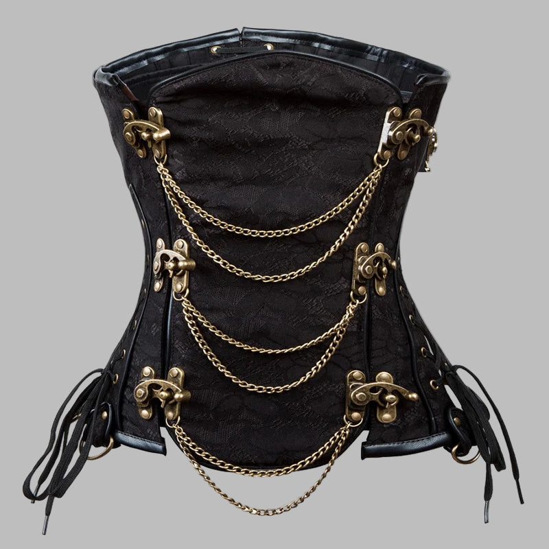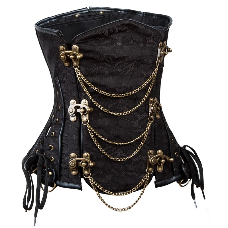 Punk gotycki Gorset Czarny z Łańcuchami Złotymi Klamrami Steampunk