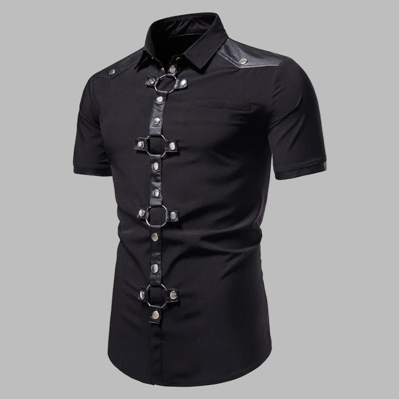 Punk Koszula z Metalowymi Kółkami i Paskami Krótki Rękaw Czarna Zobacz opcje