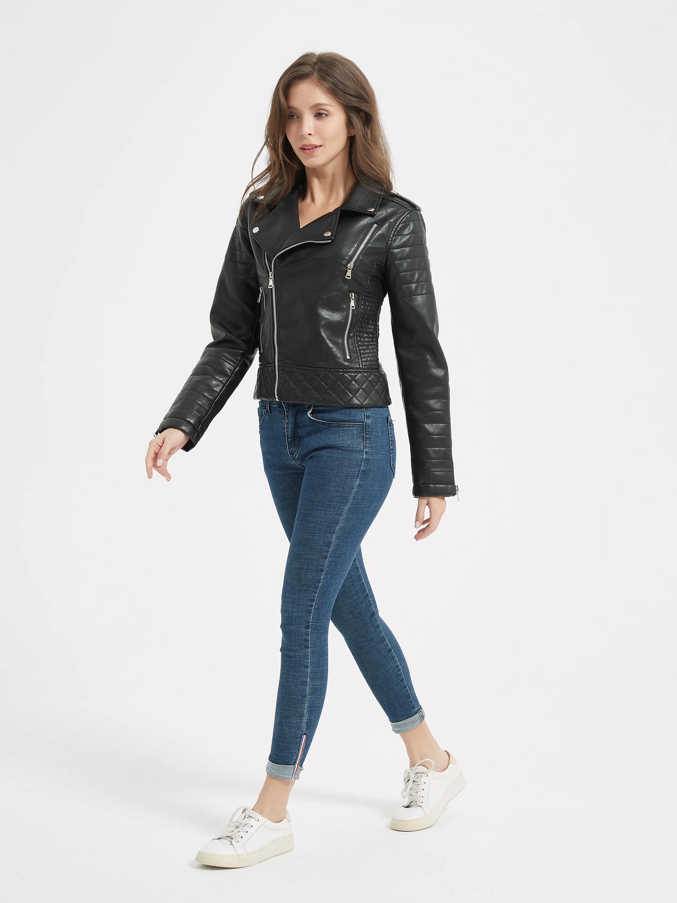 Punk Kurtka Skórzana z Pikowanymi Wstawkami