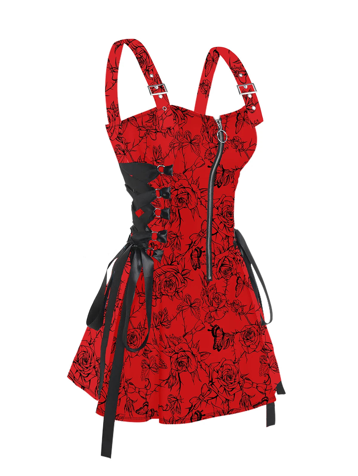 Punk Rock Gorset Czerwony w Róże z Szelkami Zobacz opcje