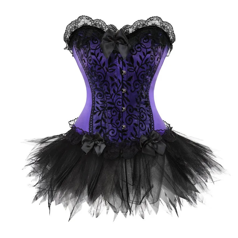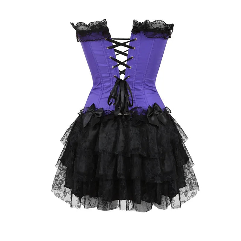Punk Rock Gorset Fioletowy z Koronką i Czarną Spódniczką 6XL