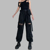 Punk Rock Gotyckie Spodnie z Wycięciami na Kolanach Czarne