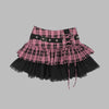 Punk Rock Grunge Spódniczka w Kratę z Koronką