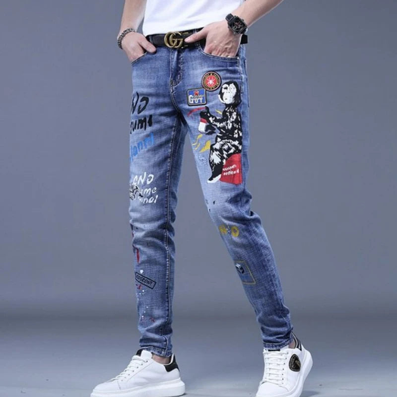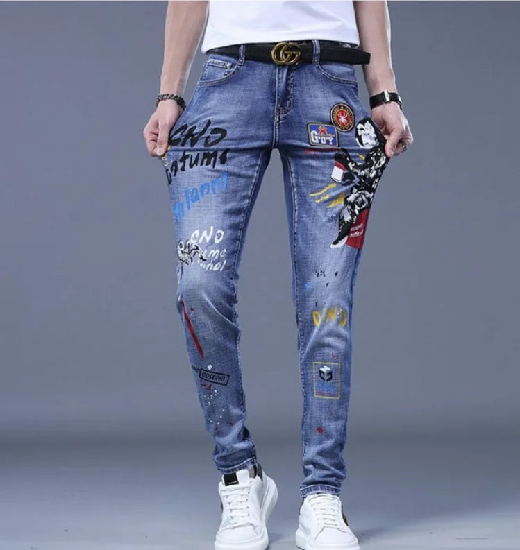 Punk Rock Jeansy z Naszywkami i Napisami Niebieskie Zobacz opcje