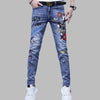 Punk Rock Jeansy z Naszywkami i Napisami Niebieskie 36