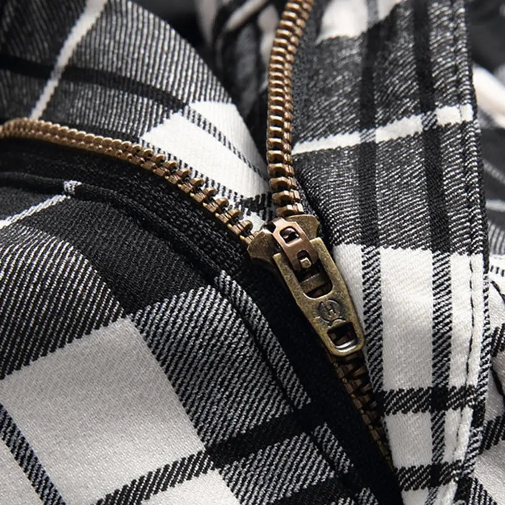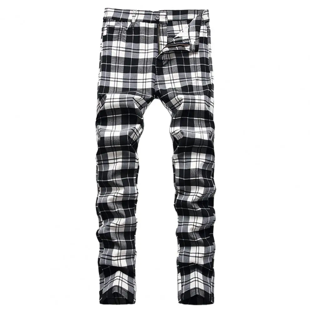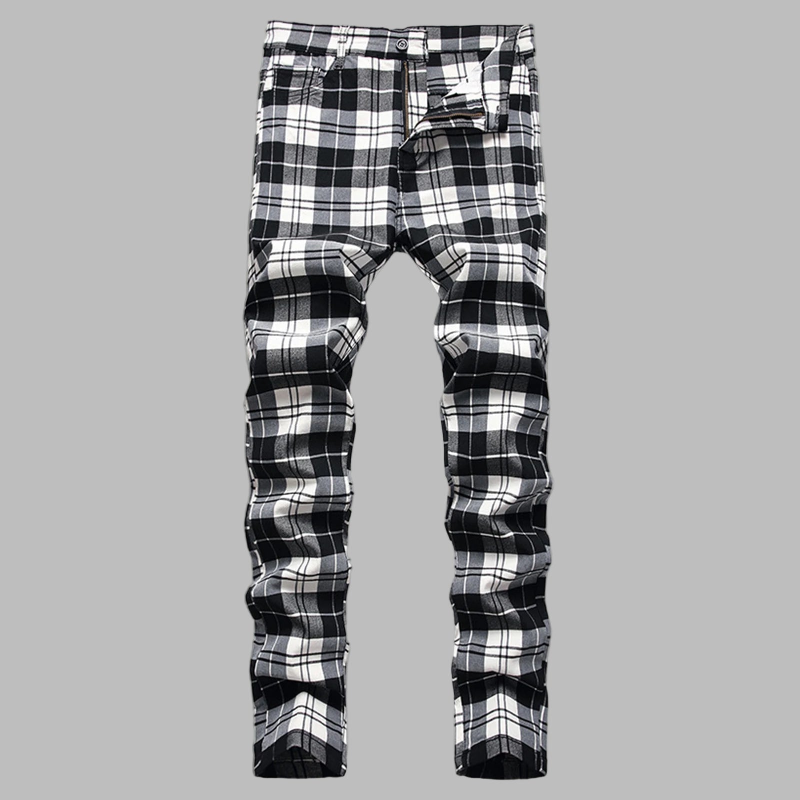 Punk Rock Spodnie Slim w Kratę Czarno-Białe 4XL