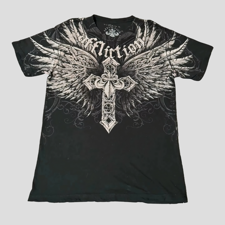 Punk Rock T-shirt ze Skrzydłami i Krzyżem Grunge