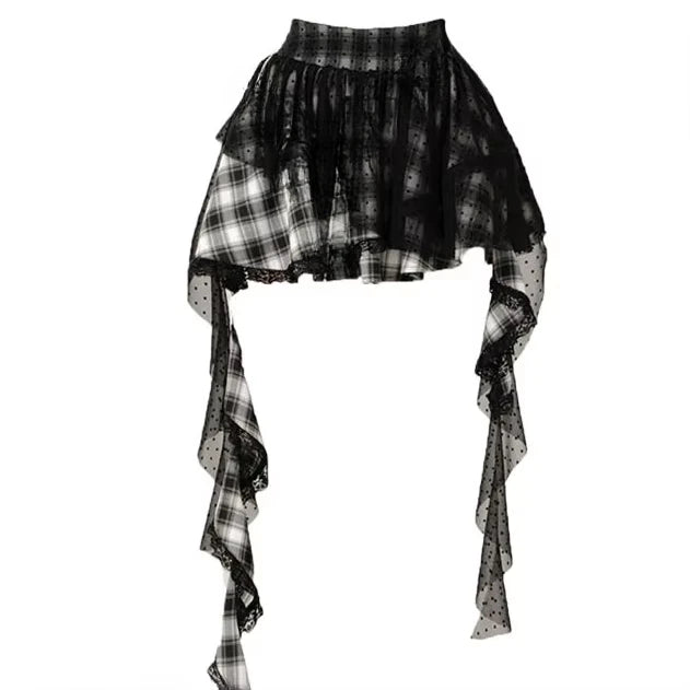 Punk Spódniczka w Kratę z Koronką i Wstążkami