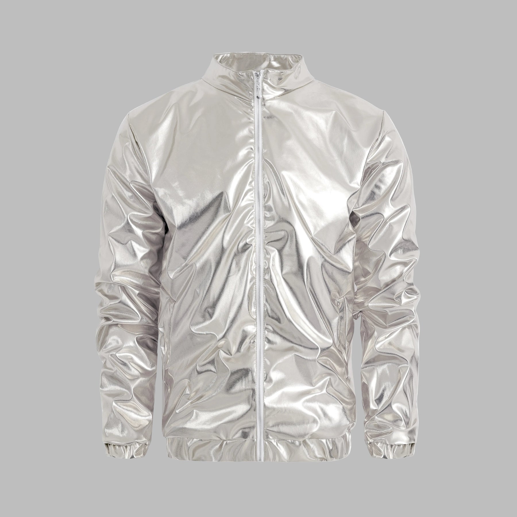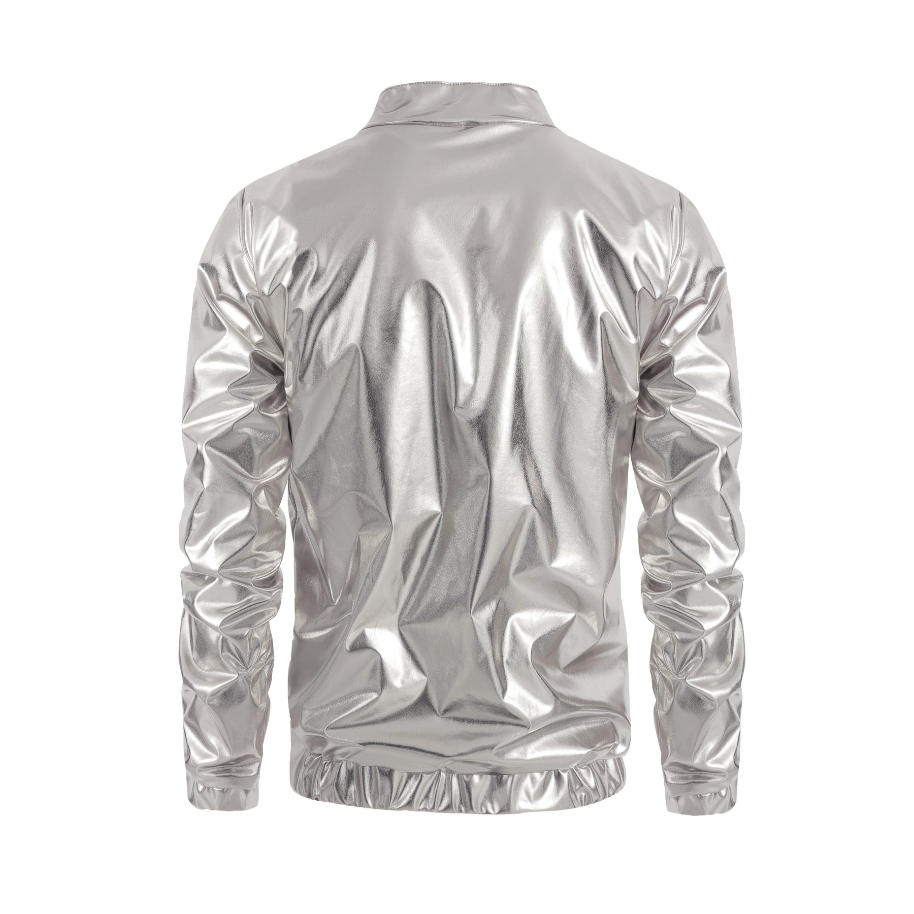Rock Bomberka Metaliczna Srebrna Błyszcząca Męska