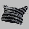 Rock Grunge Czapka Kocia z Rogami Paski Szaro-Czarne