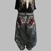 Rock Jeansy z Haftowanymi Różami Szare Vintage