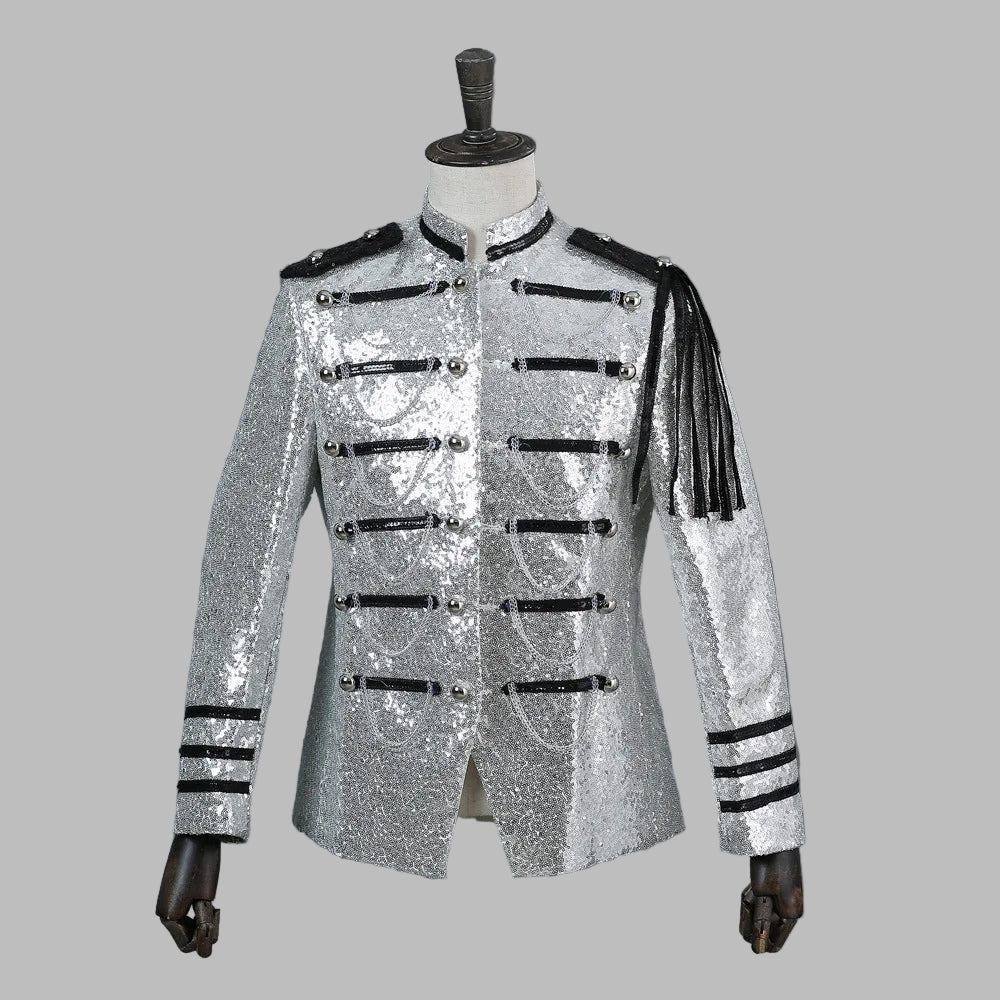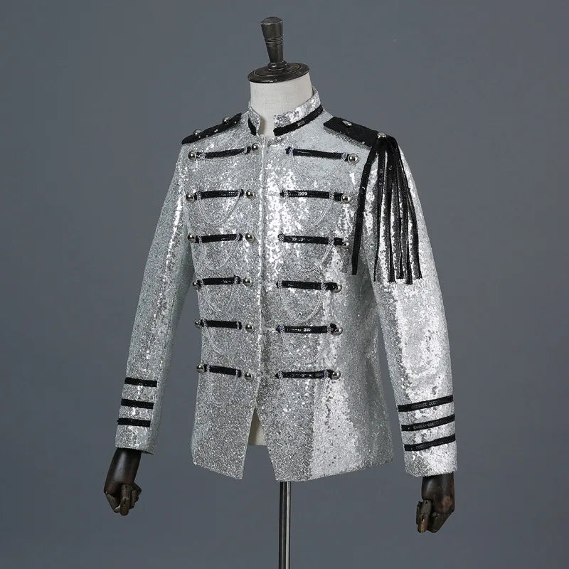 Rock Marynarka Cekinowa Srebrna z Czarnymi Frędzlami Militarna Zobacz opcje