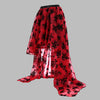 Rock Spódnica Długa Asymetryczna Czerwona z Czarnymi Kwiatami 6XL