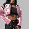 Różowo-Czarna Kurtka Crop Punk Grunge Rock