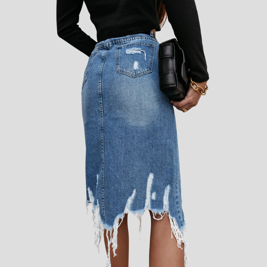 Spódnica Damska Jeansowa Grunge Postrzępiona Długa