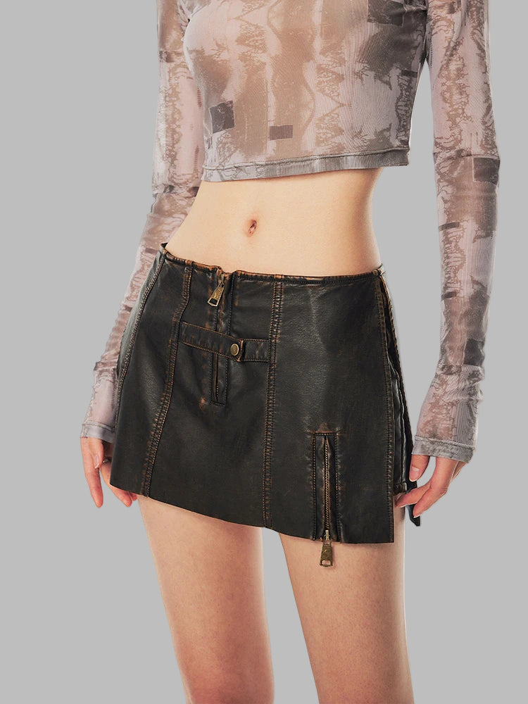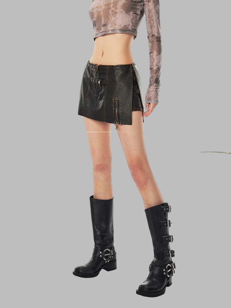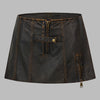 Spódnica Mini Punkowa Czarna ze Skóry z Zamkami