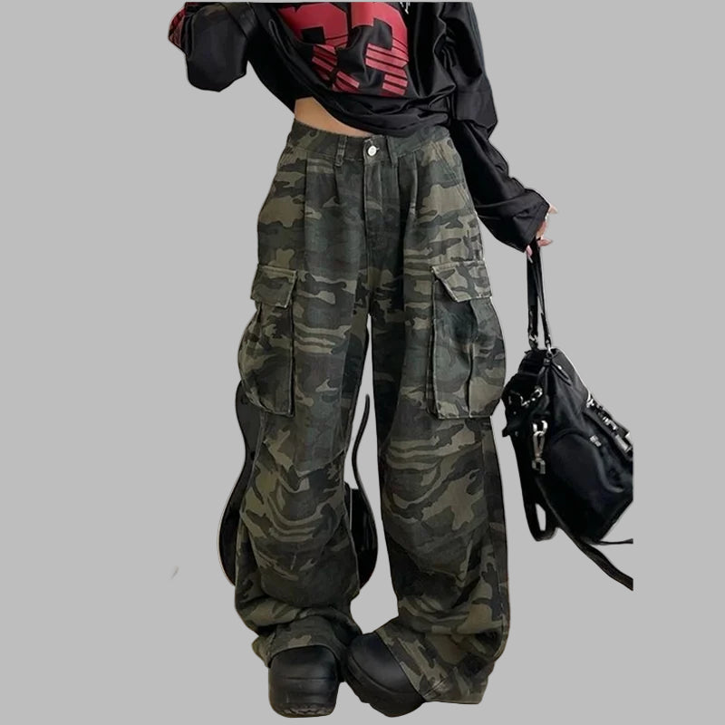 Spodnie Cargo Męskie Punk Grunge Militarne Kamuflaż Szerokie