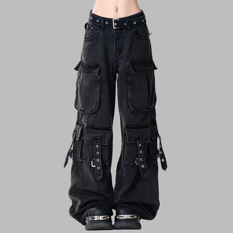 Spodnie Gotyckie Czarne Kieszenie Paski Sprzączki Cargo Zobacz opcje